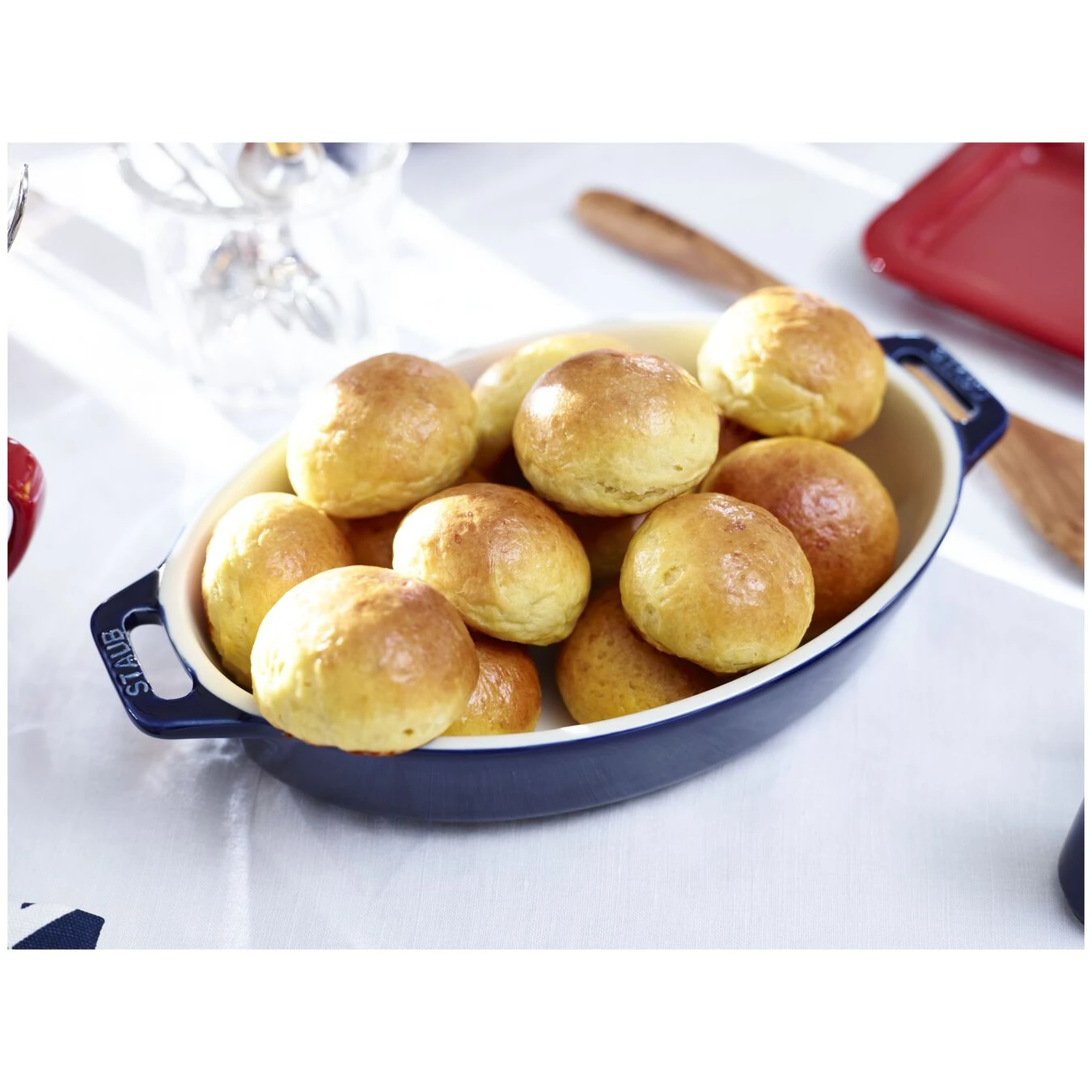 Mit einem Durchmesser von nur 17 cm bietet sich diese ovale Auflaufform von Staub für kleinere Haushalte an. Darüber hinaus können Sie darin individuelle Portionen für jeden Ihrer Gäste zubereiten. Aufgrund der hochwertigen Keramik, aus der dieses Produkt besteht, gelingen Ihnen Ihre Aufläufe darin hervorragend. Die Oberfläche ist hygienisch und leicht zu reinigen. Aufgrund der eleganten Farbe eignet sie sich auch sehr gut, um die Speisen am Esstisch zu servieren. Mit dieser Auflaufform aus der Keramik-Serie von Staub genießen Sie die Zubereitung Ihrer Mahlzeiten.